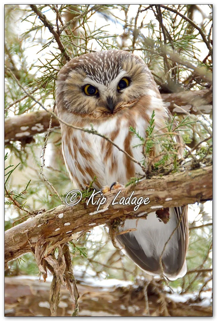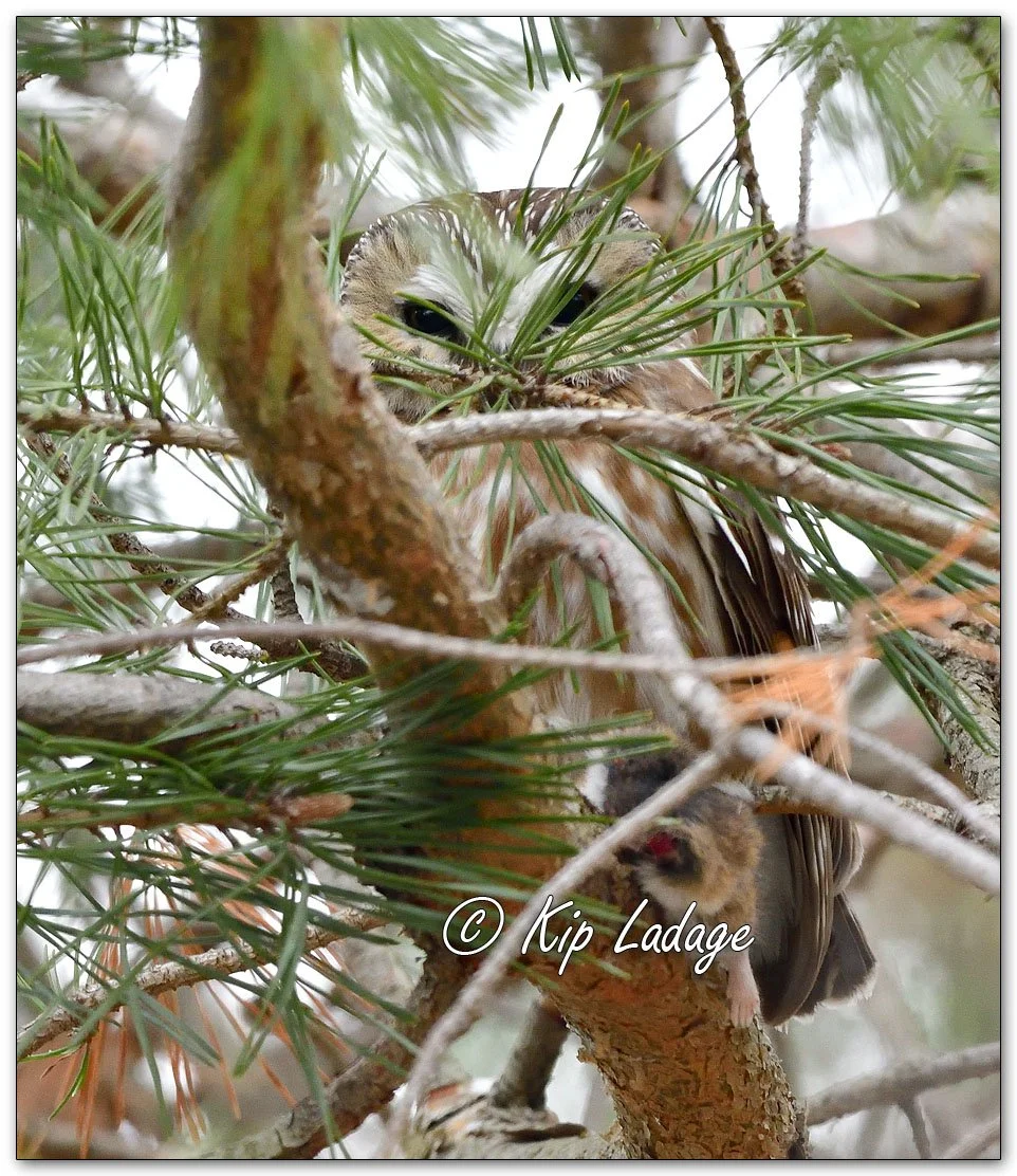 Today was a first for my brother when he joined me on a search for a saw-whet owl. To my surprise he found the first one when an hour earlier he questioned how to spell the name. By the end of the day we had photos of two. One was clutching a mouse.