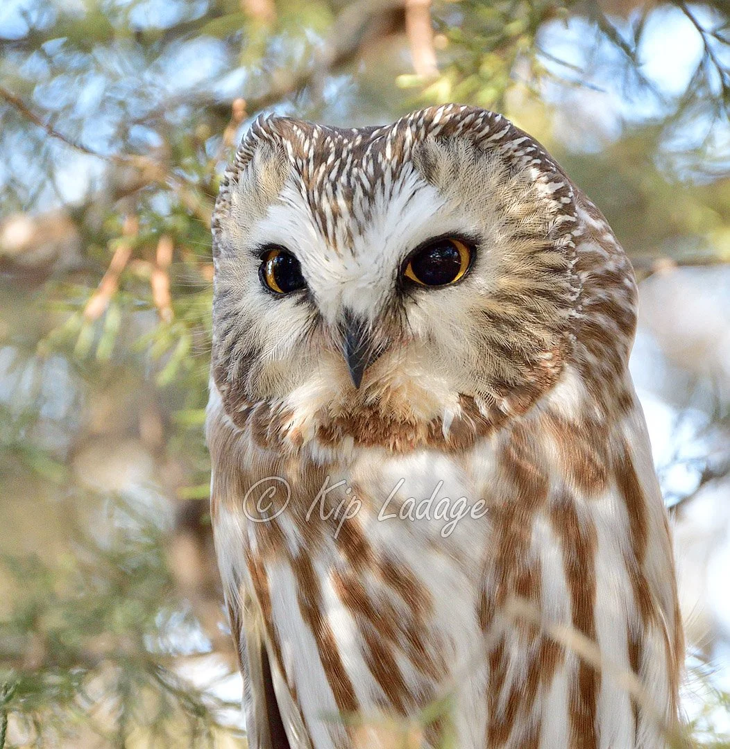 Saw-whet owls do not generally fly when you find them, as long as you respect the birds. Simply shoot your photos from a distance and leave the area and the owls will likely remain on perch. I have yet to see a saw-whet owl fly, so apparently I have not been intruding on them.