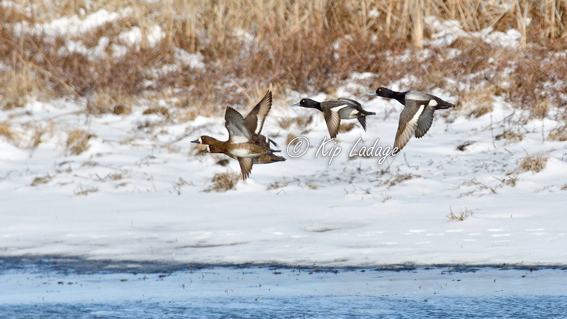 I did see some waterfowl - mostly mallards - and most a long distance away. These scaup caught my attention as they took flight near me.