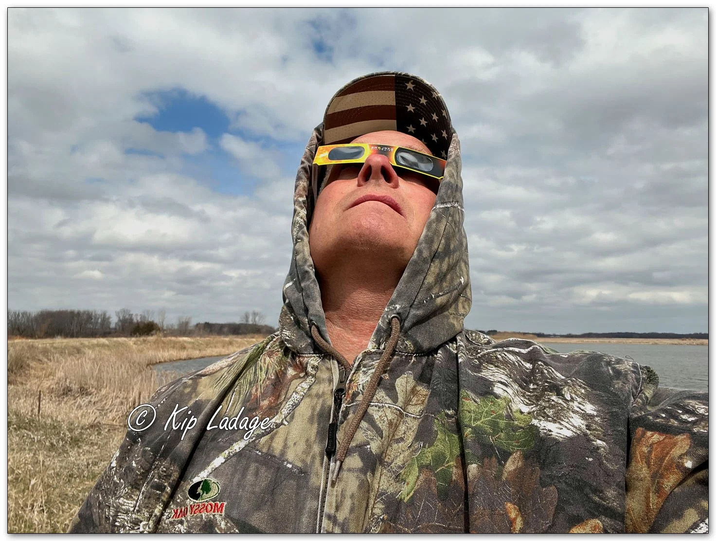 Early into my outing, when the moon was first beginning to obscure the sun, I could sense an eerie feeling. There was an uneasiness, a feeling of impending doom, or something unknown about to happen. Even the light seemed different as the partially blocked sun was peeking through clouds that varied from dark and heavy to slightly more than wispy. That was odd enough, but then things changed.
