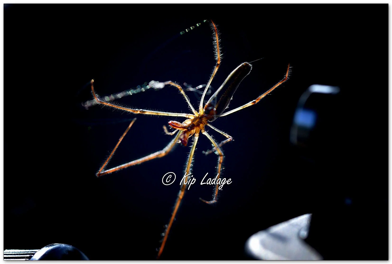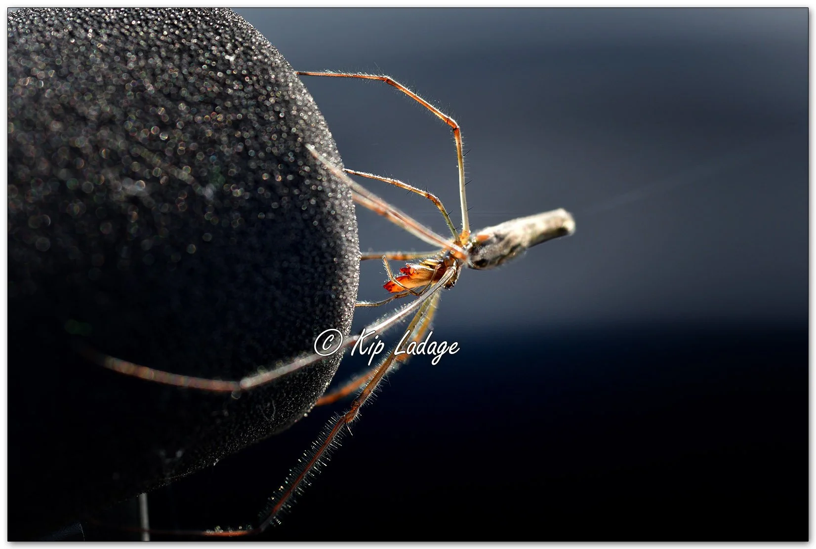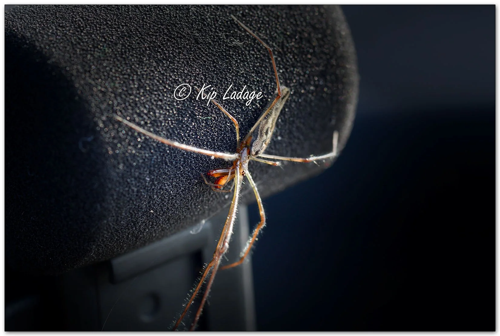 While out loosening my arm today, as I was shooting pictures of a prothonotary warbler, I noticed a large spider crawling on my GoPro camera. Of course my attention promptly switched from the bird to the spider that was so close. I quickly transitioned from shooting “farther away” wildlife to macro photography so I could document the elongated stilt spider.